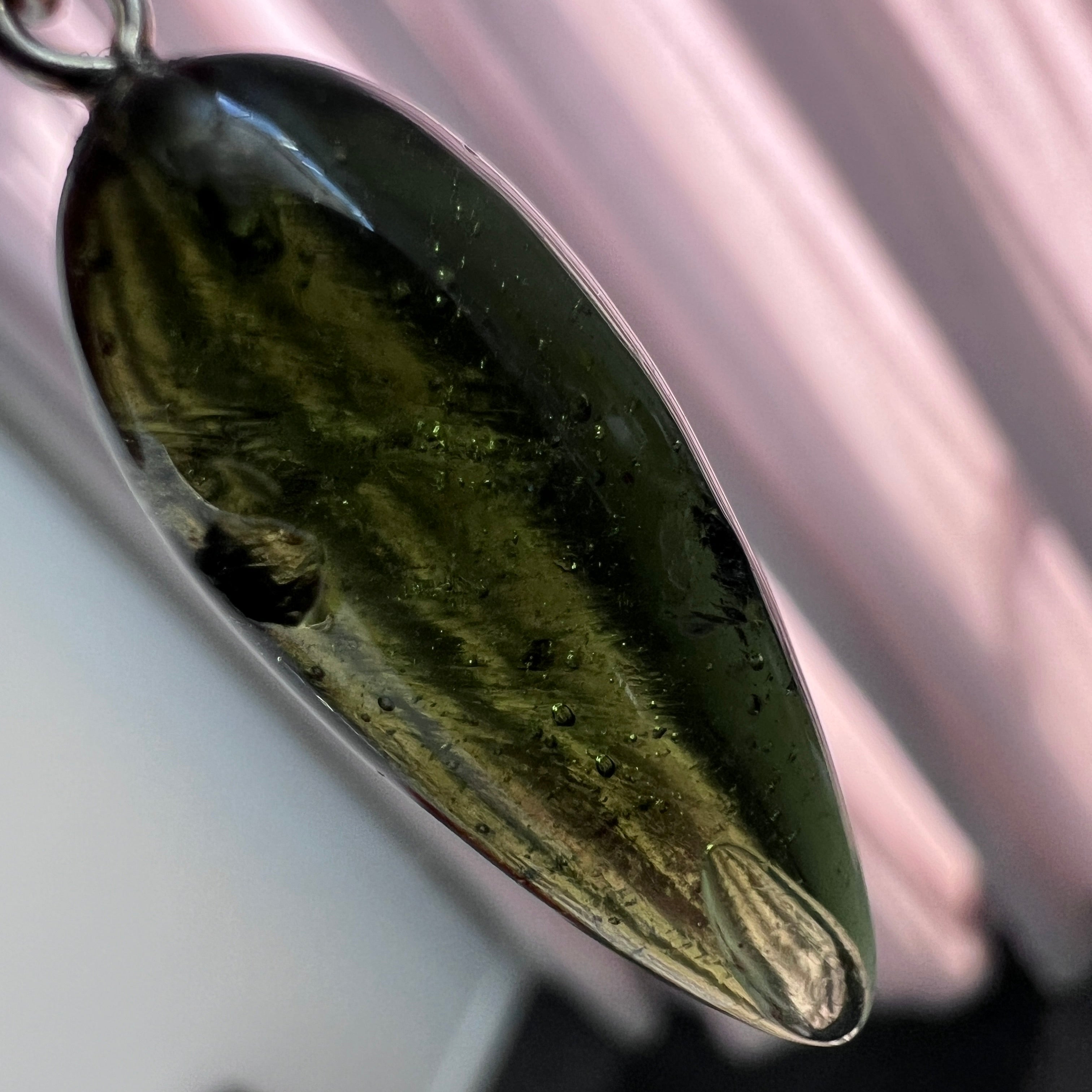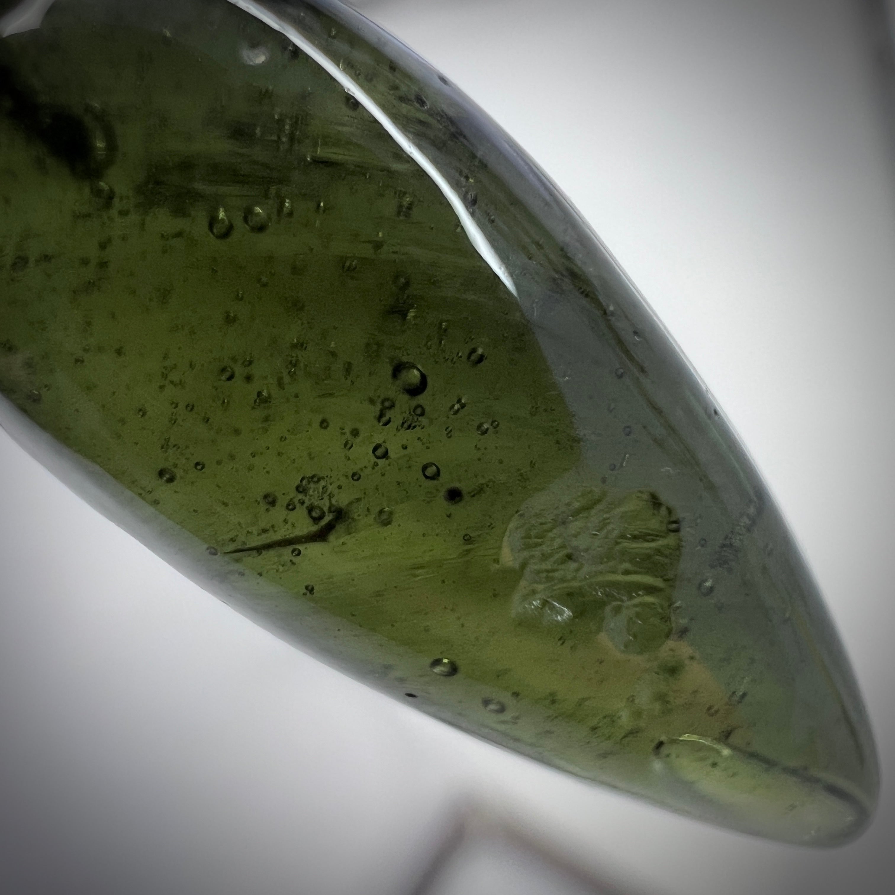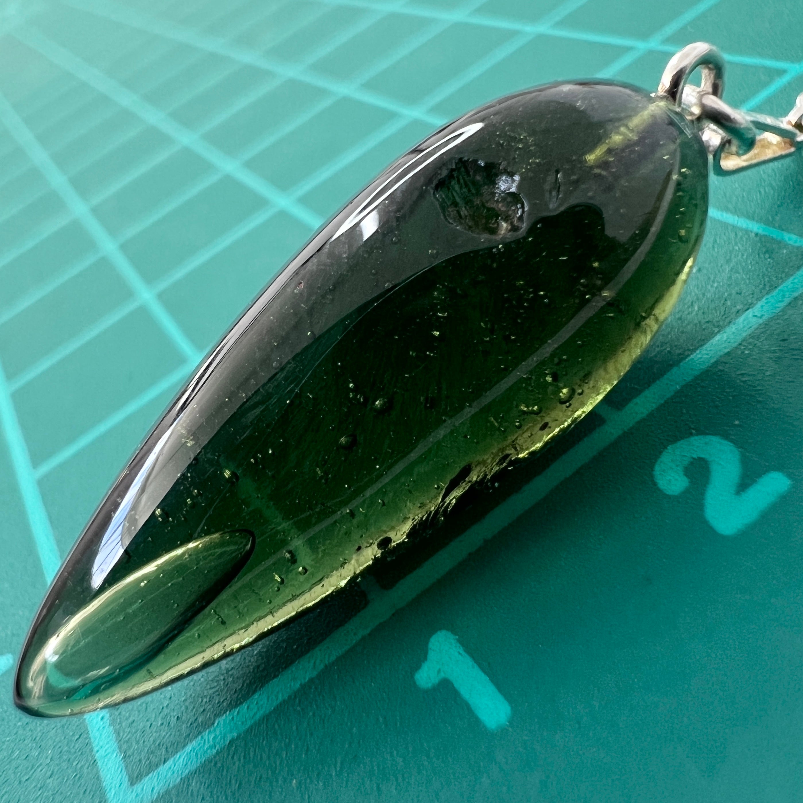 Gracefully suspended between raw nature and masterful Czech craftsmanship, this Inner Bubble Pendulum is carved from a significantly larger, premium Moldavite specimen—an important detail that speaks directly to its rarity and value.