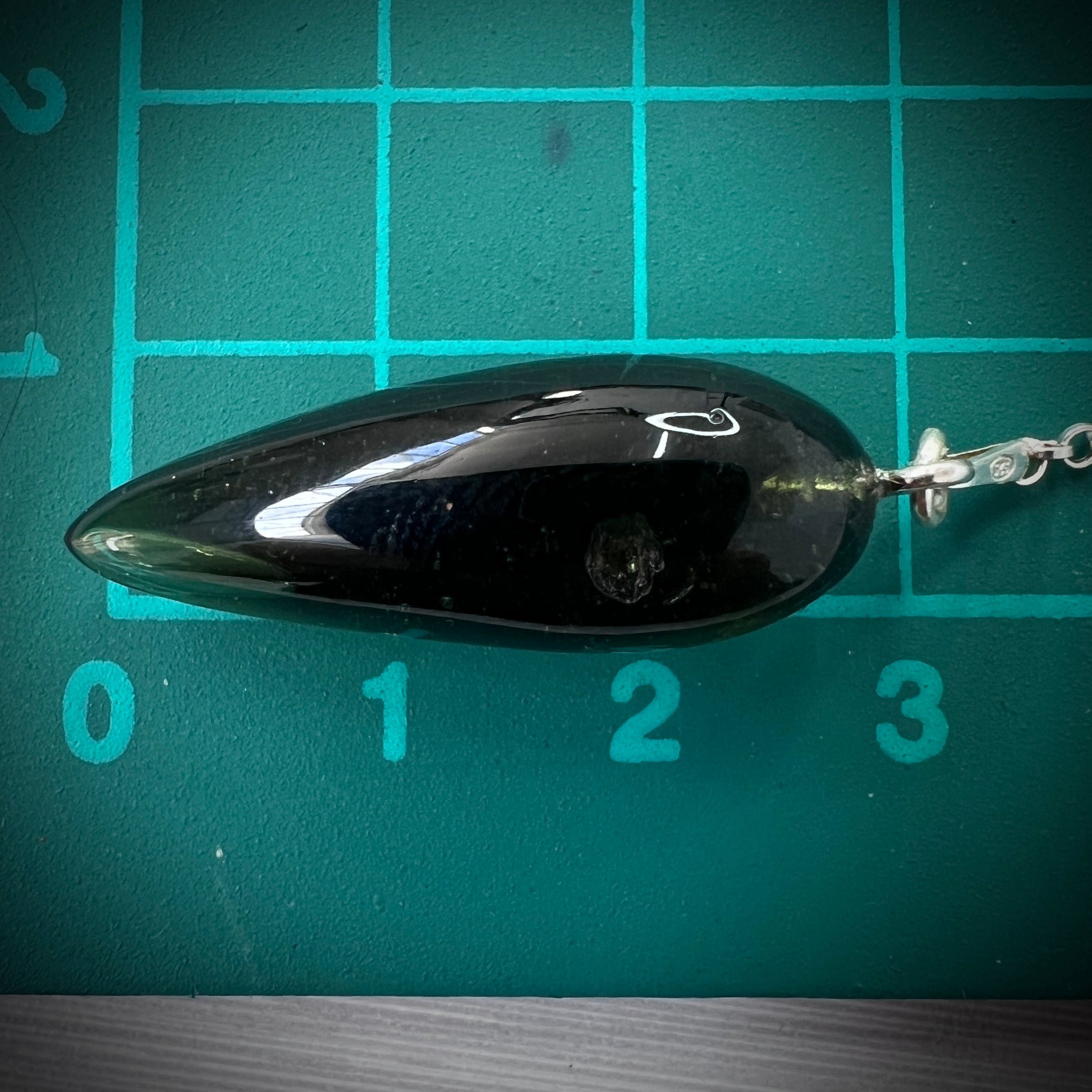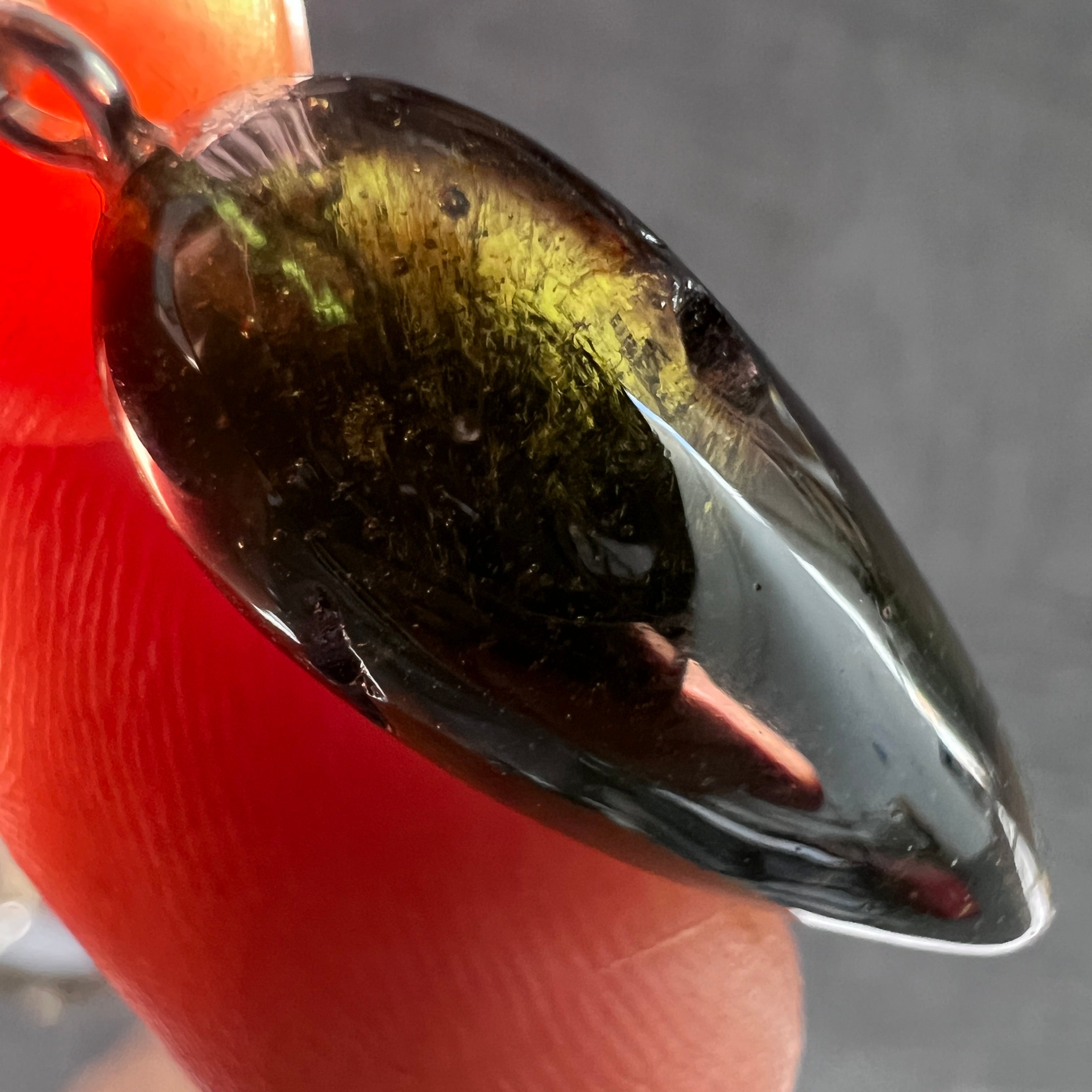 Every pendulum begins its journey as a raw Moldavite specimen nearly twice the size and weight of the finished masterpiece. In true artistic fashion, Pavlína painstakingly carves away everything that is not the pendulum, gradually refining and polishing the form until its final shape emerges.