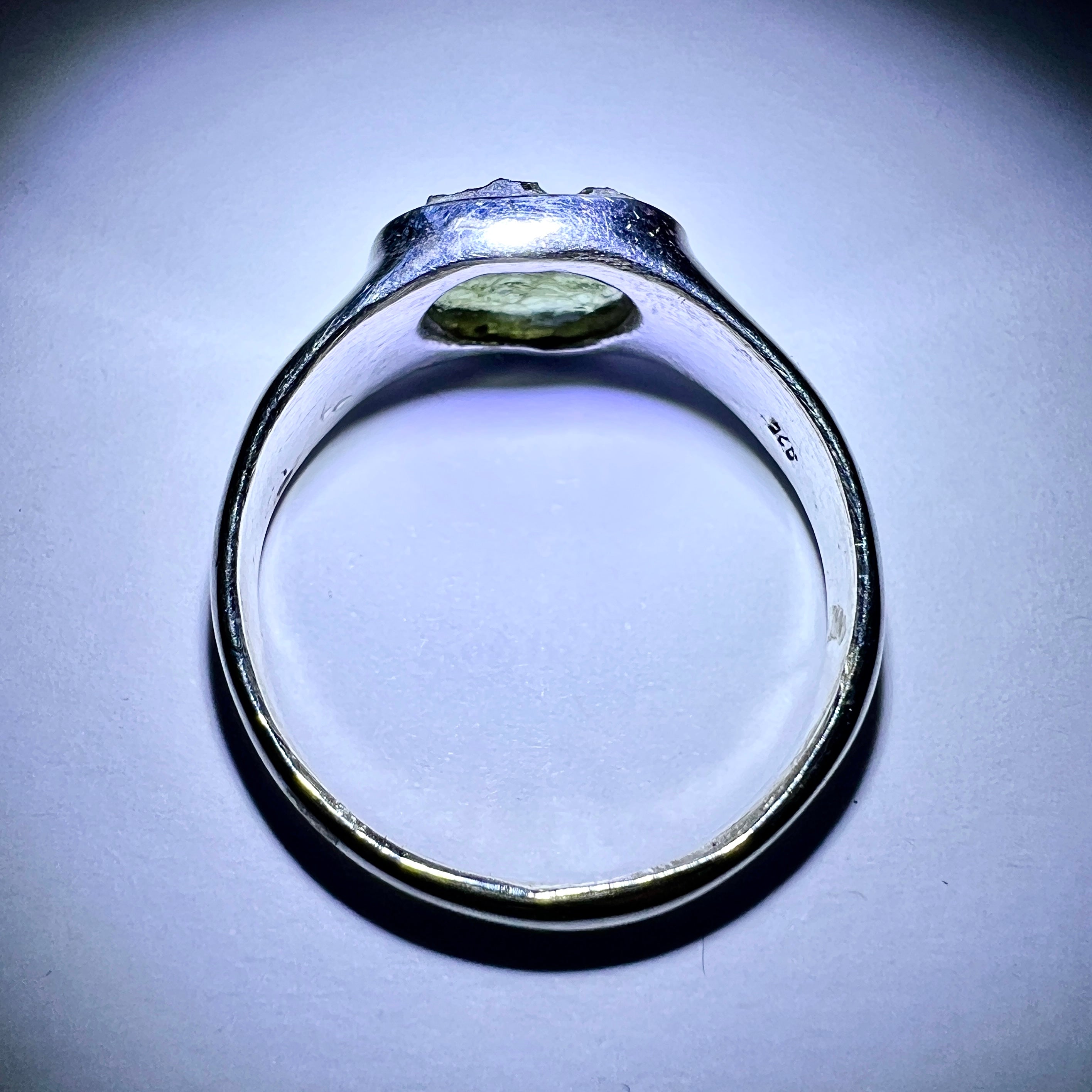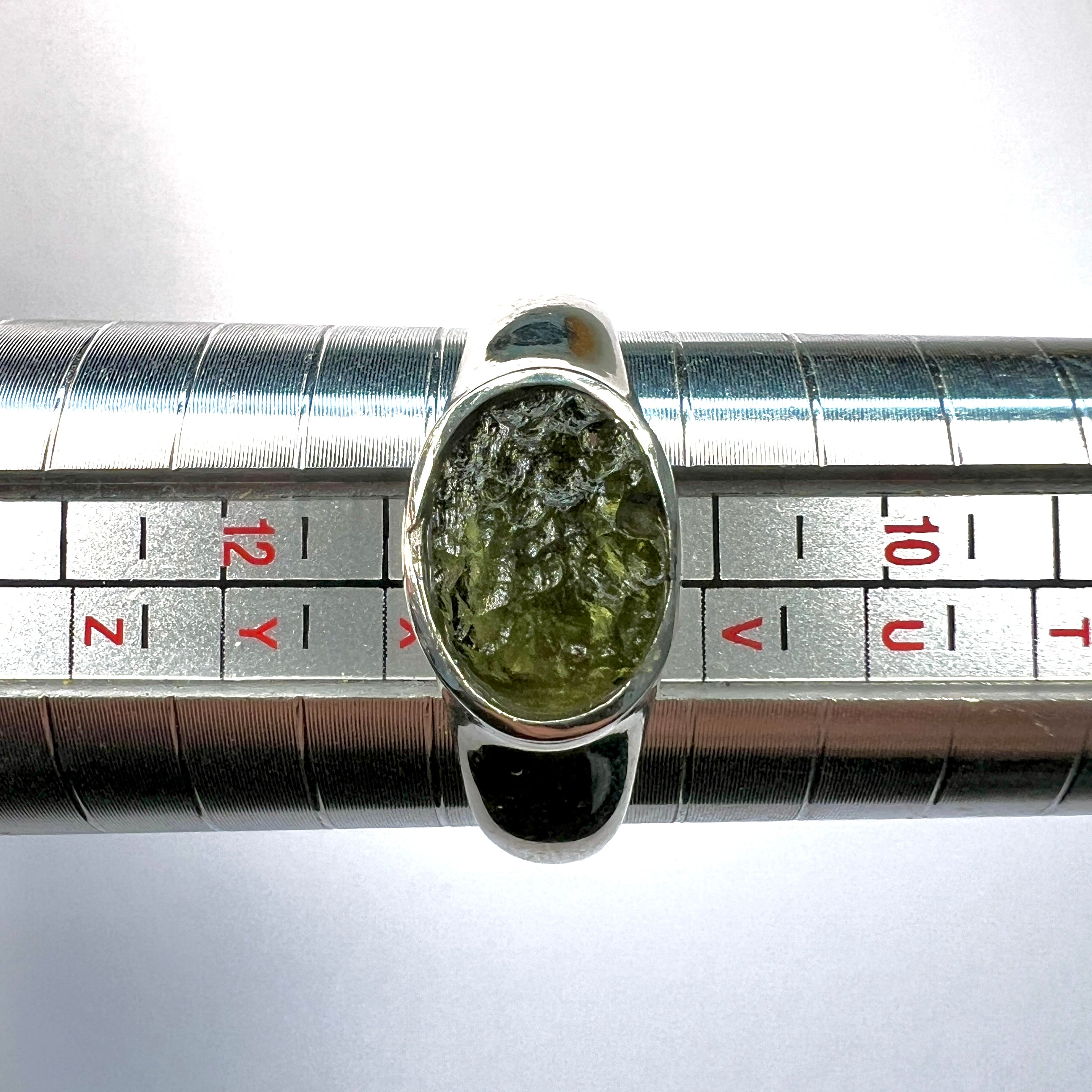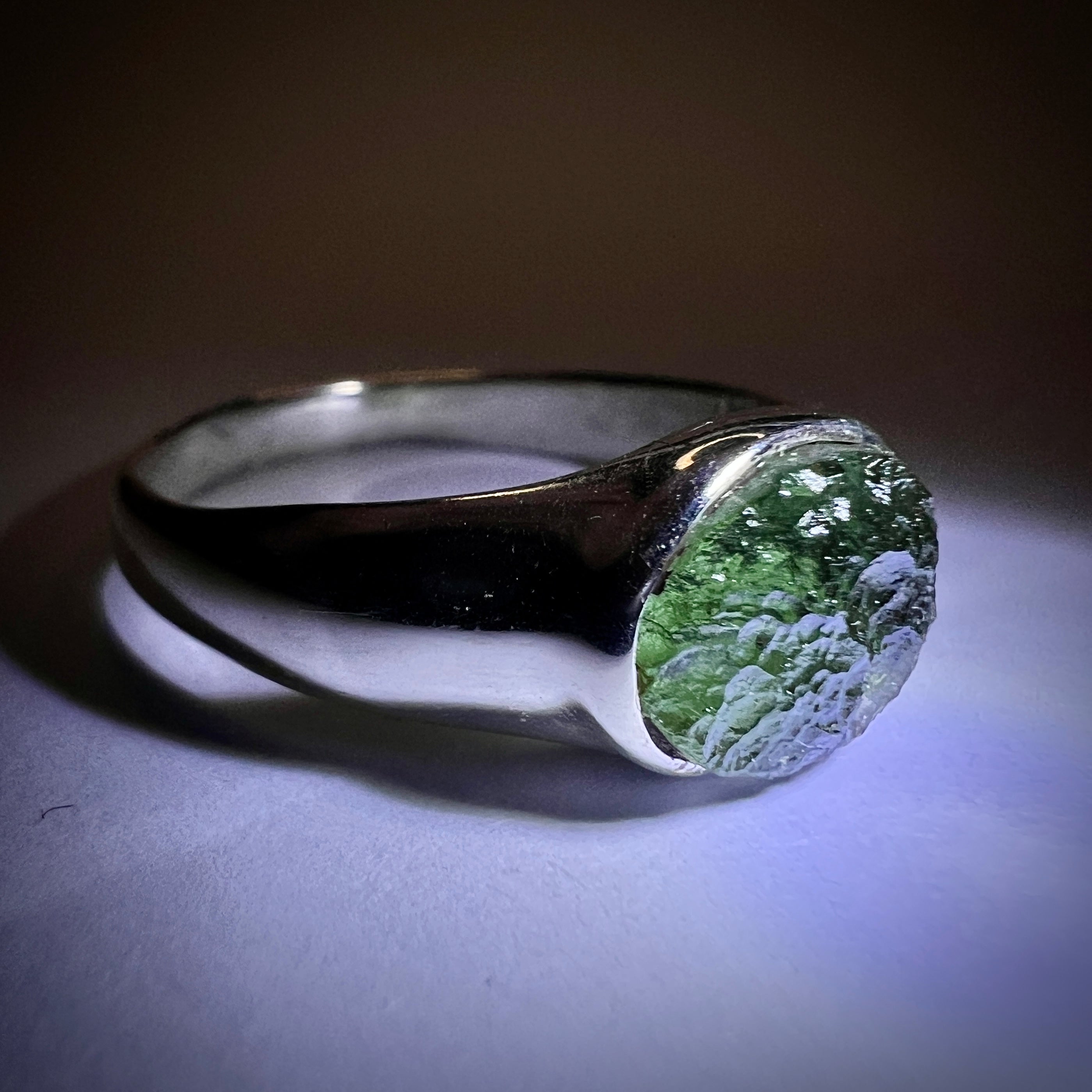 Moldavite is a rare tektite or meteoric glass, caused by an asteroid impact 15mil. years ago. The intense, 10,000°c+ temperatures of the strike vapourised the asteroid, target rock and sand, flinging the molten substance high into the atmosphere.