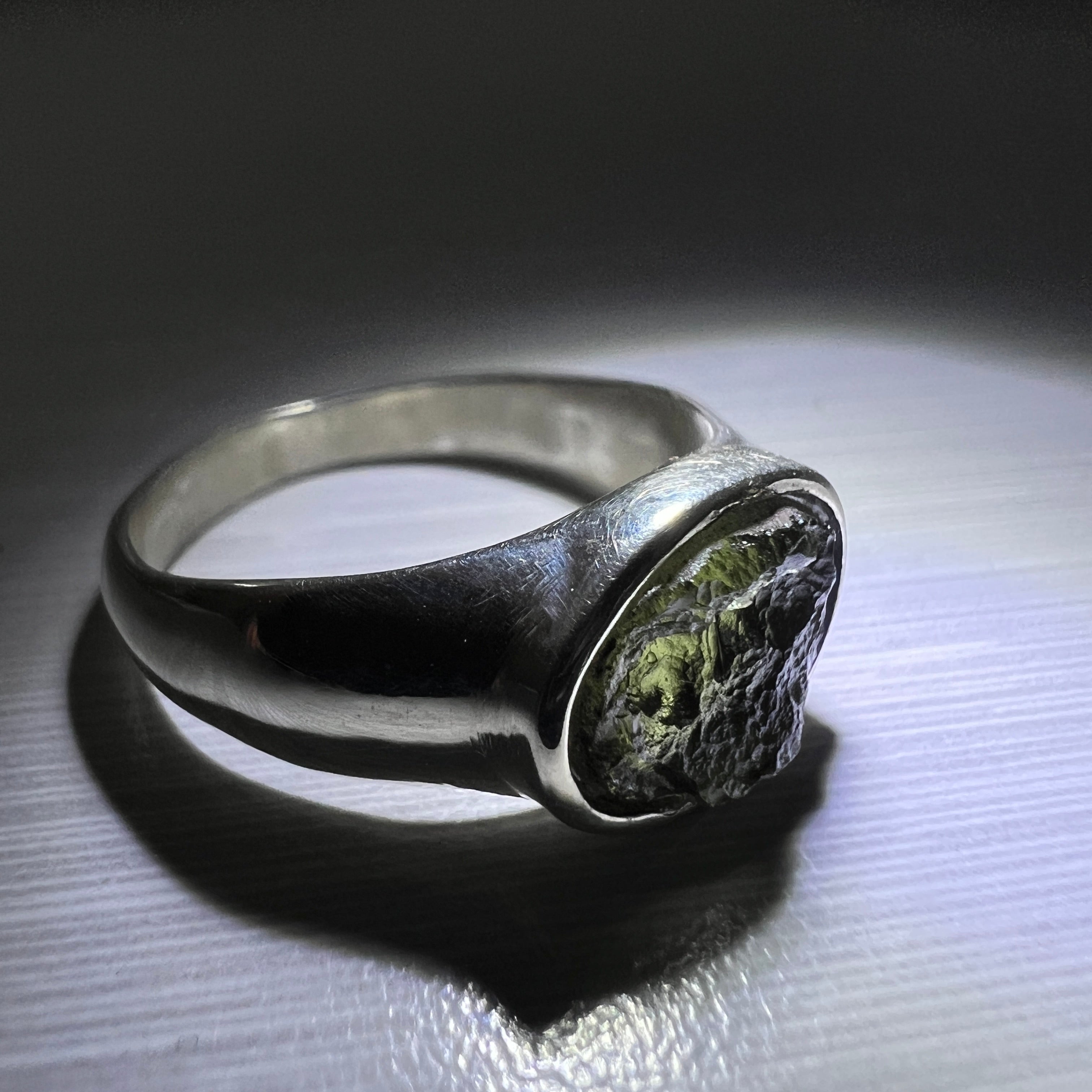 Moldavite Silver Ring (Size 7.5 - P)