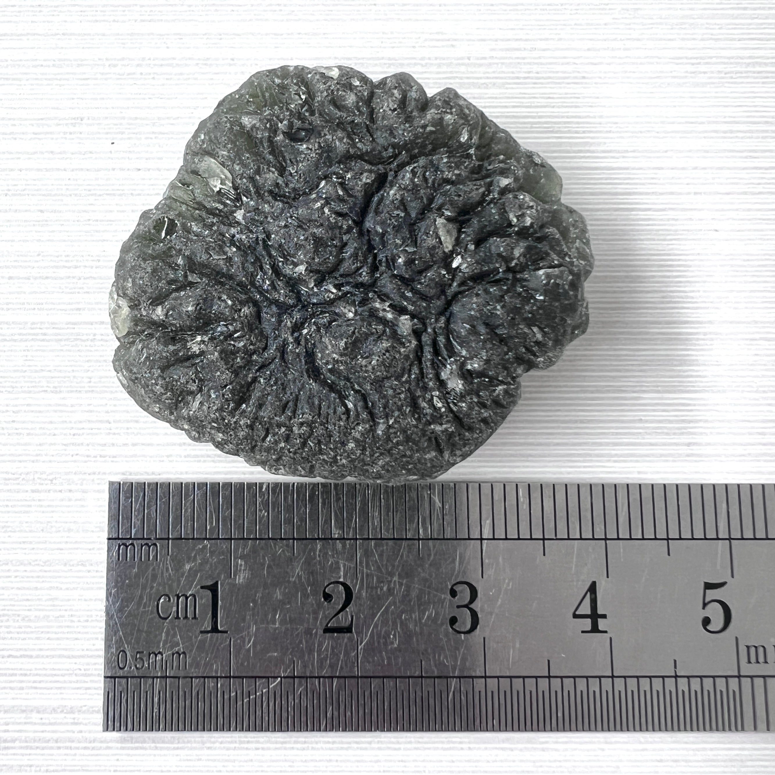 This exceptional Moldavite specimen weights a substantil 19.92 grams. Sourced from Radomilice, its pale green hue and rugged form carry the unmistakable character of a true field find.