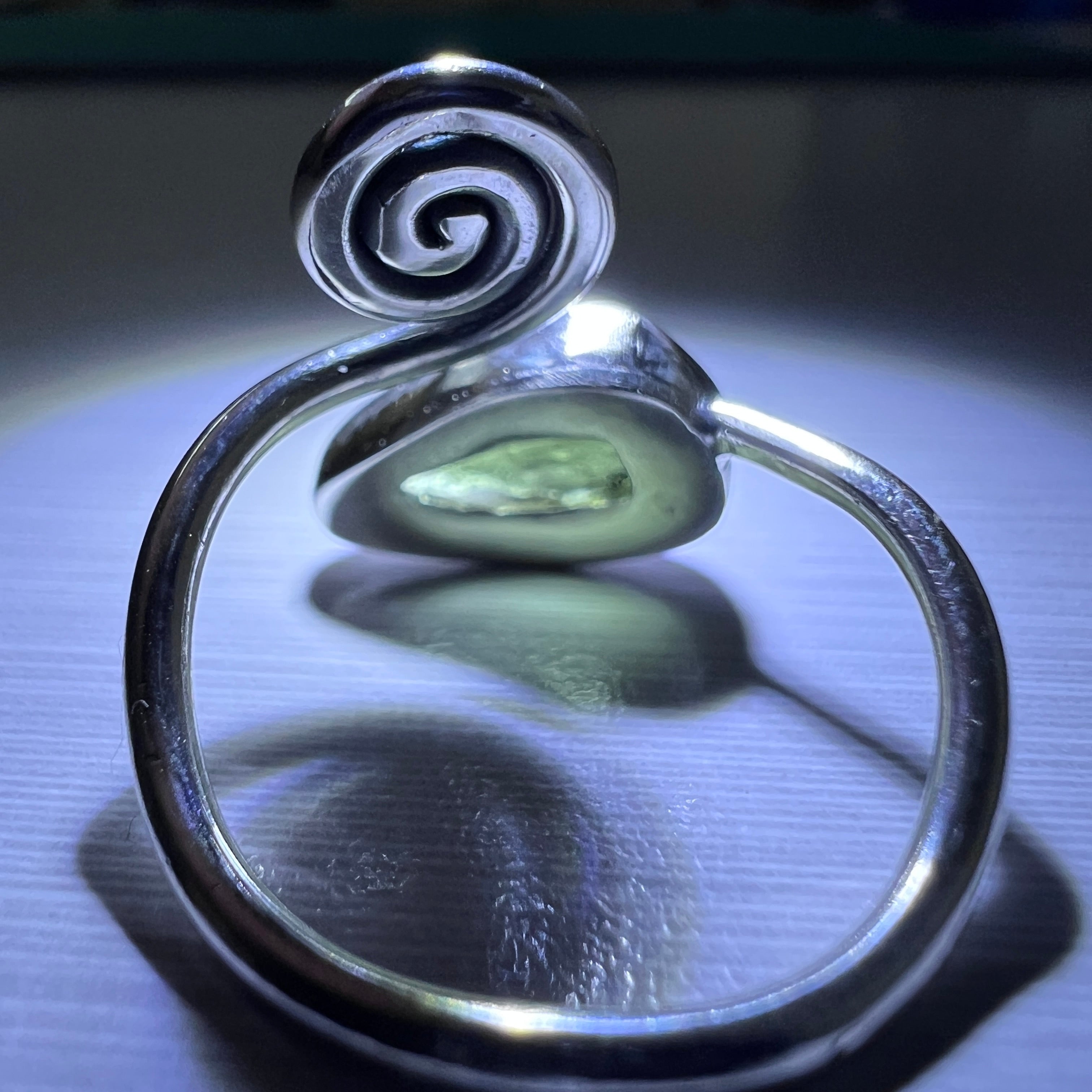 🌀 Spiral Design Sterling Silver Moldavite Ring — 0.7g Chlum | Open Size 8.5 (R)